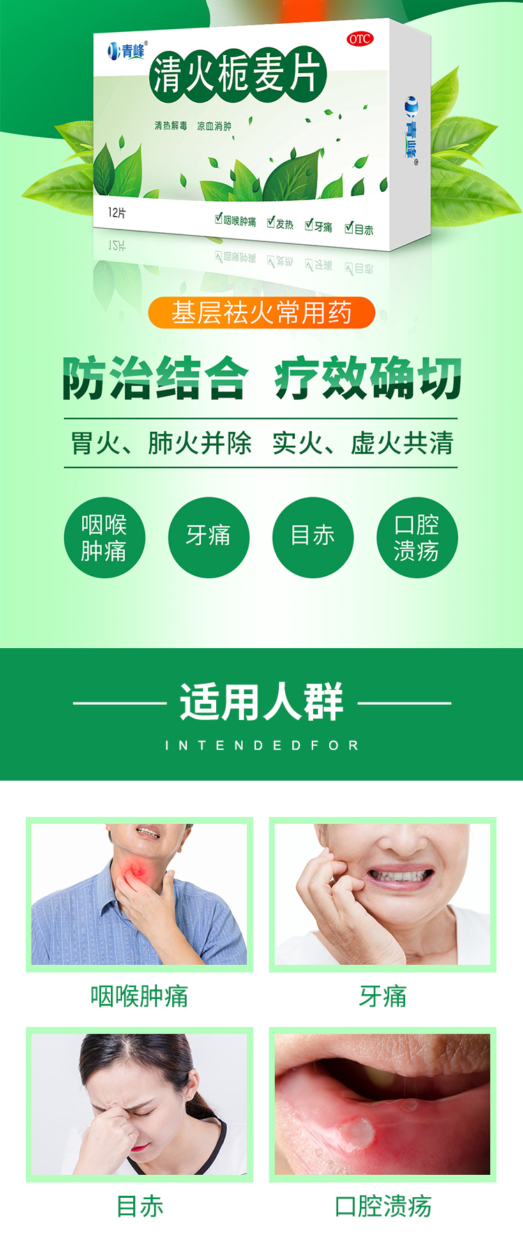 1、清火梔麥片聯(lián)合炎可寧片——抗炎、消腫、清火一步到位,有效治療咽喉腫痛。