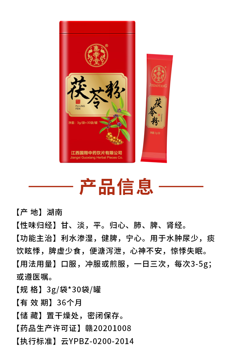 【產(chǎn)品特點(diǎn)】精選茯苓,柔和綿淡;低溫氣流粉碎,保留藥效;超細(xì)粉,粉質(zhì)細(xì)膩易吸收;獨(dú)立包裝,好攜帶服用方便
