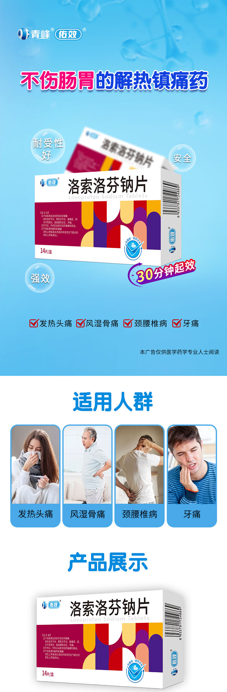 【功能主治】①用于類風濕性關節炎、變形性關節病、腰痛癥、肩周炎、頸肩臂綜合癥的消炎和鎮痛;②用于手術后、外傷后及拔牙后的鎮痛和消炎;③用于急性上呼吸道炎(包括伴有急性支氣管炎的急性上呼吸道炎)的解熱和鎮痛。
